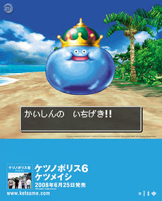 ケツメイシのアルバムのテレビCMは特徴的で、「ケツノポリス4」では緑のジャケットにかけて、キューサイ「青汁」CMのパロディーをキューサイ・悪役商会八名さんと実現。「ケツノポリス5」では赤のジャケットにかけて、「機動戦士ガンダム」の赤い彗星こと“シャア”が新録のナレーションとともに登場した。そして、今回の「ケツノポリス6」では、水色のジャケットということで、スライムが重なりあいキングスライムへと変身することをイメージし、「ドラゴンクエストV 天空の花嫁」とコラボレーションすることになったのだ。